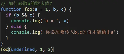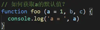 现在我们来改写一下,上面出现问题中的函数调用就可以获取到a的默认值,如下所示: