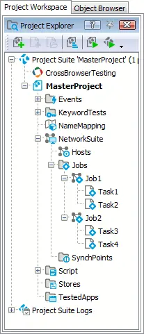 该NetworkSuite工程项目包含了Jobs collection,该collection存储分布式测试中使用的作业。这些作业管理任务以及指定应在哪些从属主机上运行的项目。