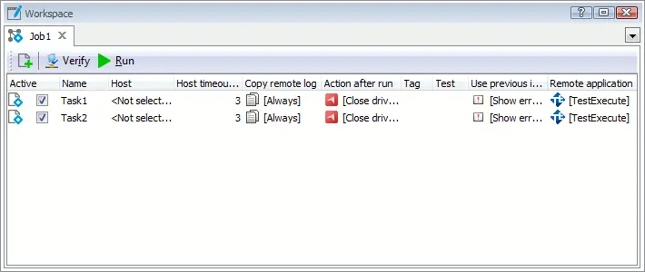 - 双击要修改任务的作业项。TestComplete在Workspace panel中打开Task editor。