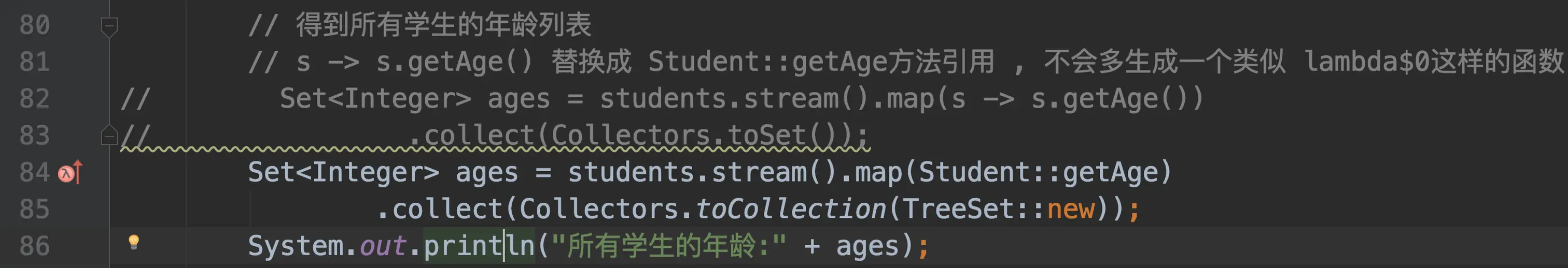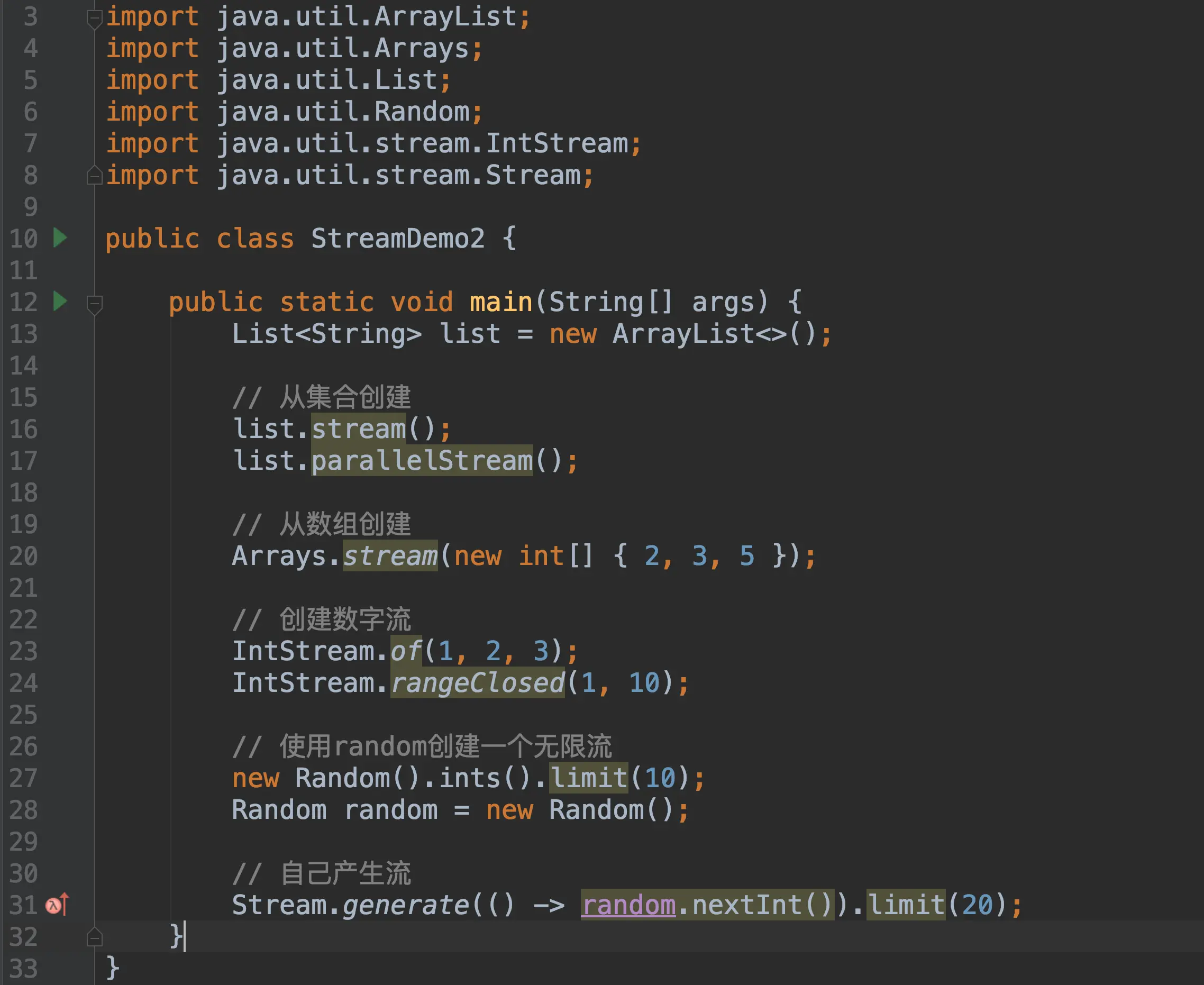 这和Scala集合的转换操作不同,Scala集合转换操作会生成一个新的中间集合,显而易见Java的这种设计会减少中间对象的生成