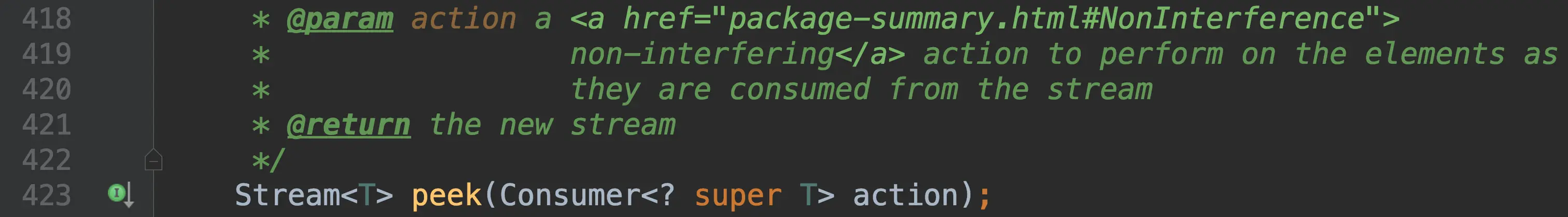 会使用一个Consumer消费流中的元素,但是返回的流还是包含原来的流中的元素。