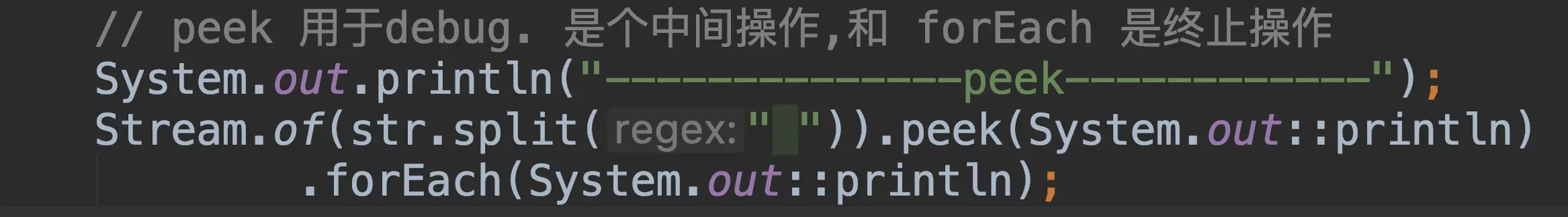 .peek(System.out::println) //a,b,c,d