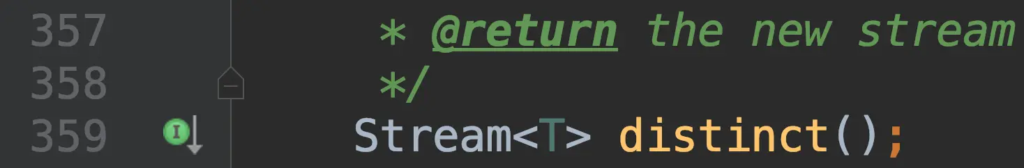 保证输出的流中包含唯一的元素,它是通过Object.equals(Object)来检查是否包含相同的元素