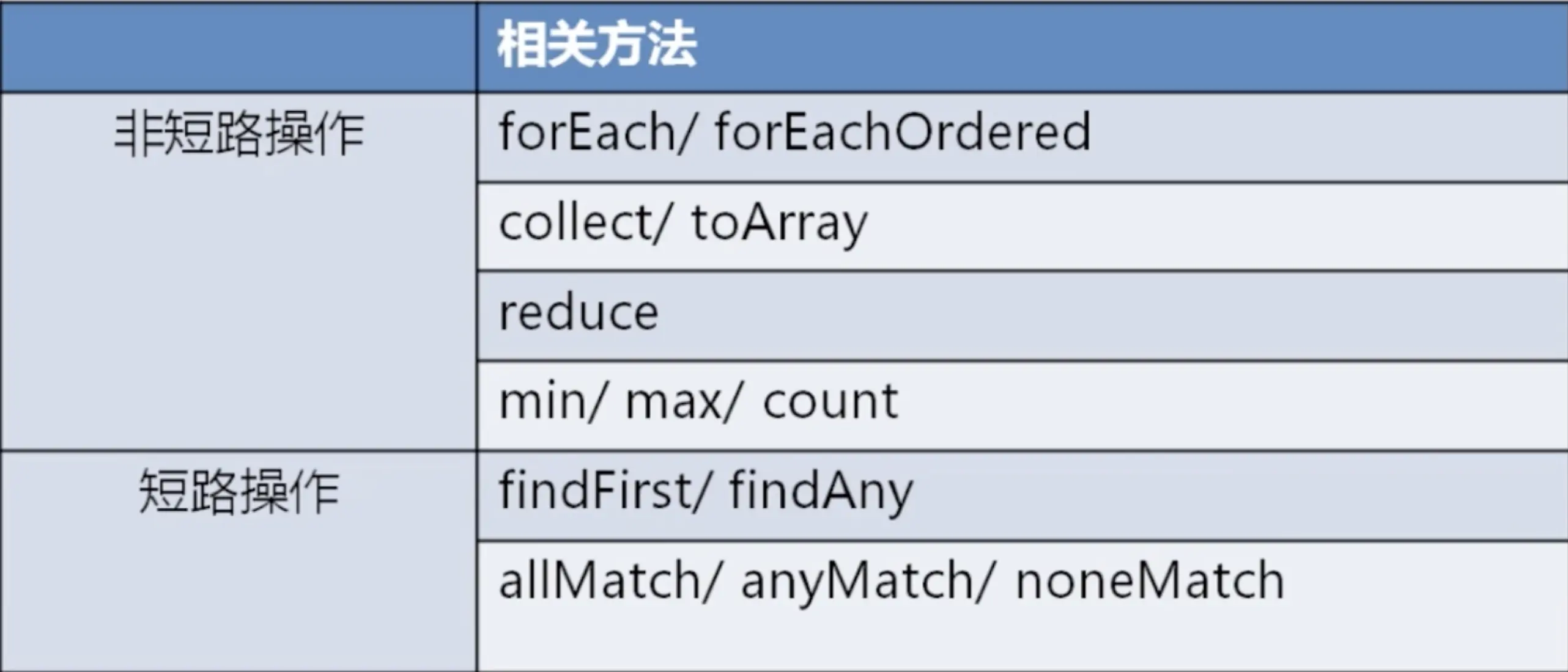 对于无限数量的流,有些操作是可以在有限的时间完成的,比如limit(n) 或 findFirst(),这些操作可是实现"短路"(Short-circuiting),访问到有限的元素后就可以返回。 - 纯消费