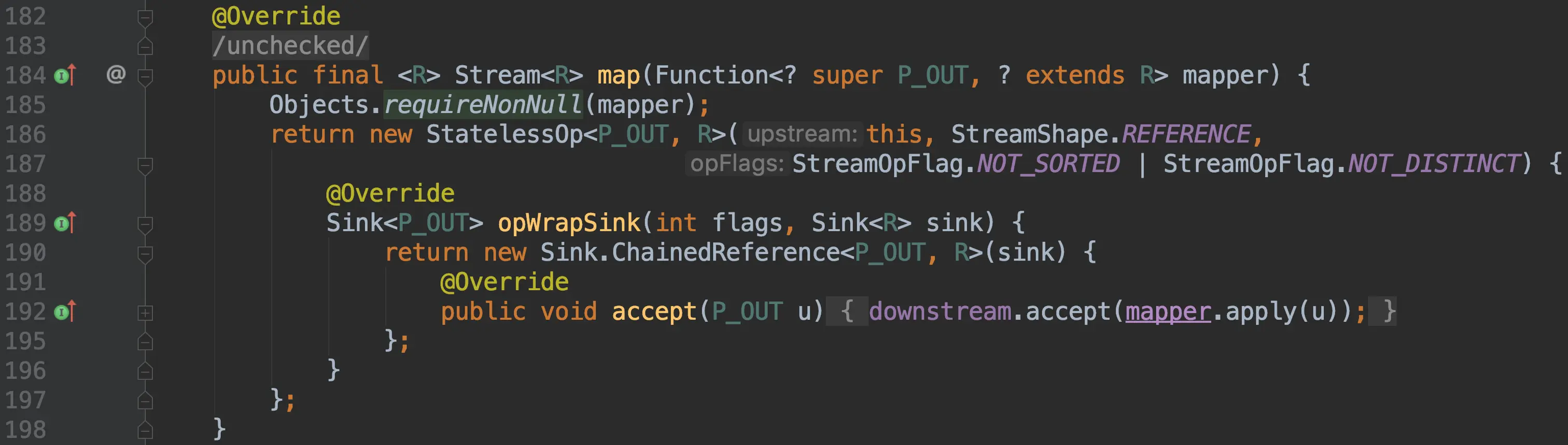 mapper函数会将每一个元素转换成一个流对象,而flatMap方法返回的流包含的元素为mapper生成的所有流中的元素