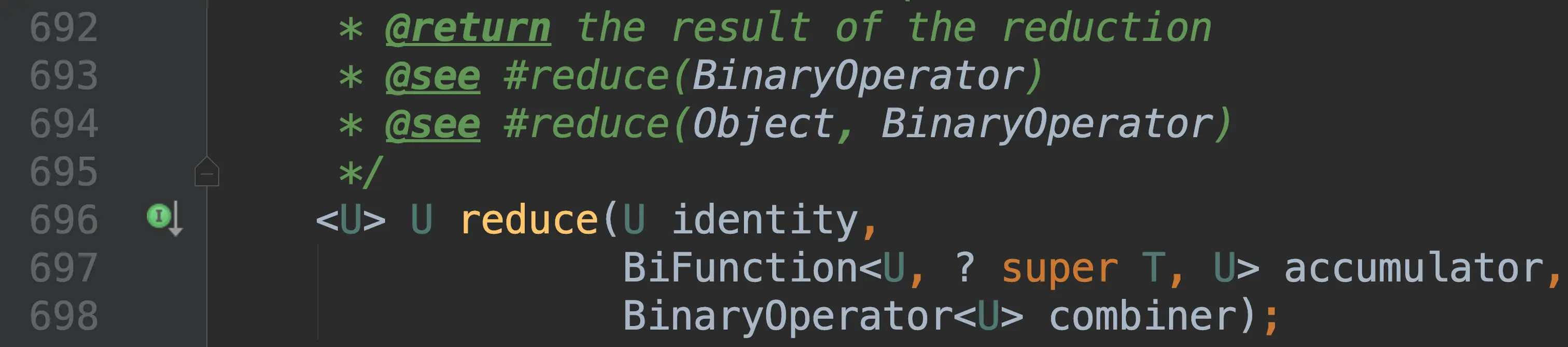 值得注意的是accumulator应该满足结合性(associative)