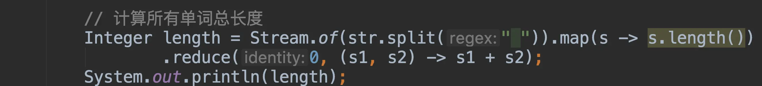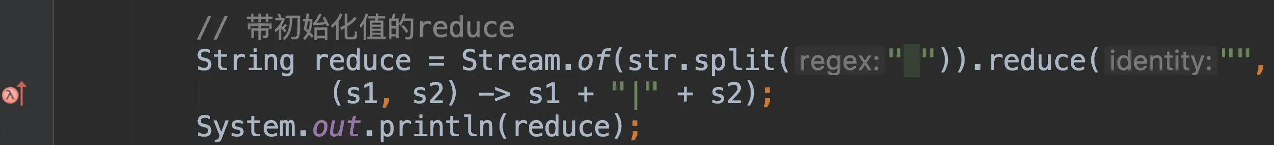 Integer total2 = Stream.of(1,2,3,4,5).reduce(0, (x, y) -> x +y);