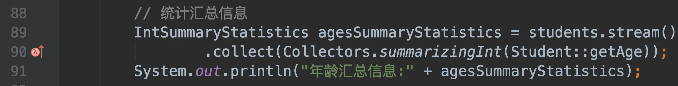 辅助类Collectors提供了很多的collector,可以满足我们日常的需求,你也可以创建新的collector实现特定的需求。它是一个值得关注的类,你需要熟悉这些特定的收集器,如聚合类averagingInt、最大最小值maxByminBy、计数counting、分组groupingBy、字符串连接joining、分区partitioningBy、汇总summarizingInt、化简reducing、转换toXXX等。