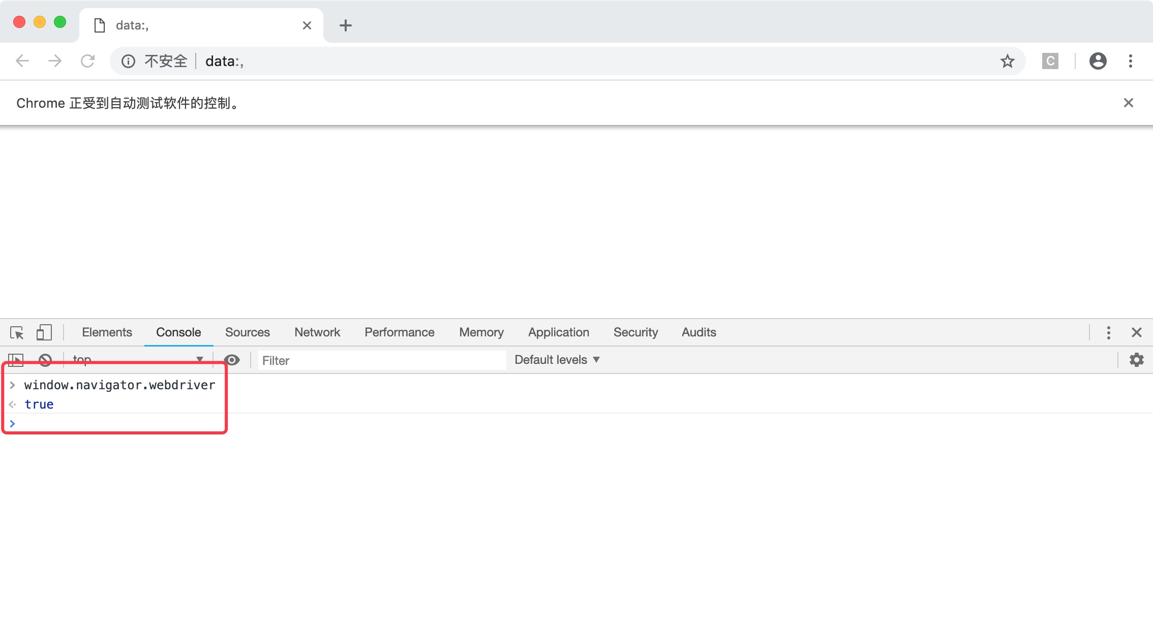 先不说淘宝这种基于用户行为的反爬虫策略,仅仅是一个普通的小网站,使用一行Javascript代码,就能轻轻松松识别你是否使用了Selenium + Chromedriver模拟浏览器。