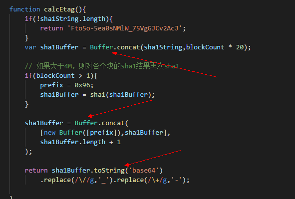 3. 对拼接好的21字节的二进制数据做url_safe_base64计算,所得结果即为ETag值。