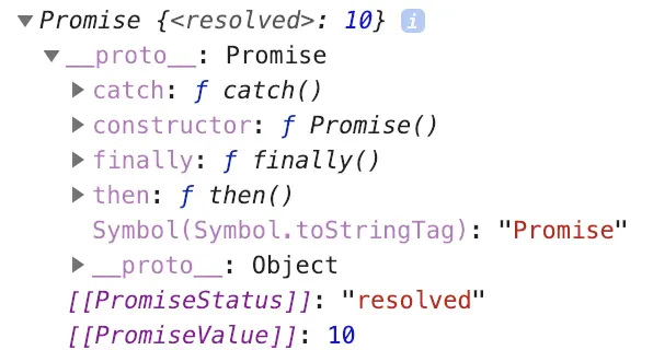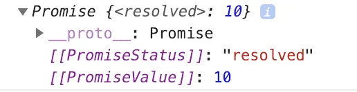 const myPromise = new Promise(function(resolve, reject) { resolve(10);});