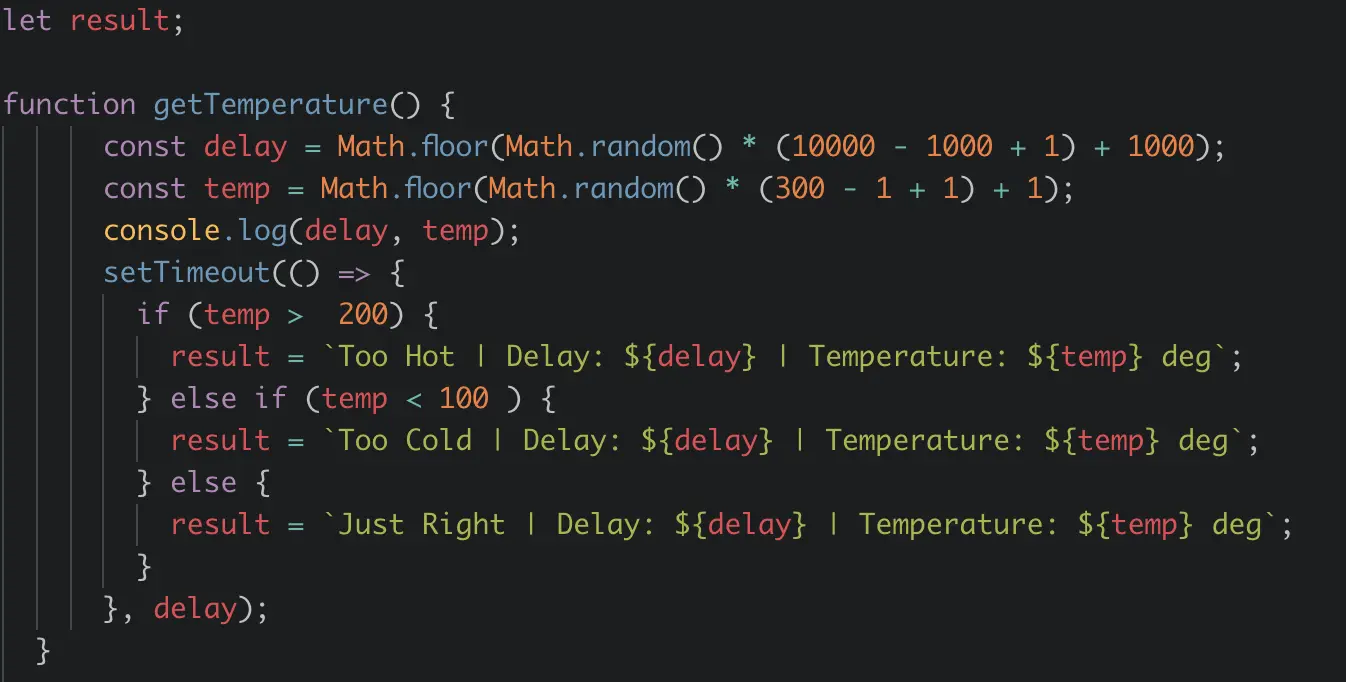 Math.random()andsetTimeout(). - We simulate a temperature with
