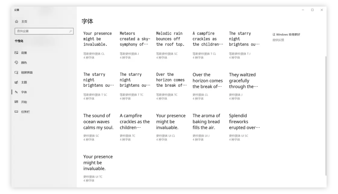 优化 Windows 字体的步骤大概到这里就结束了。如果你还记得某个 Windows 版本里面引入了「新微软雅黑」,那个新字体就是 Windows 平台中文(或者更广义的:CJK 文字内容)字体的终极解决方案了,让我们共同期待新字体的上线。