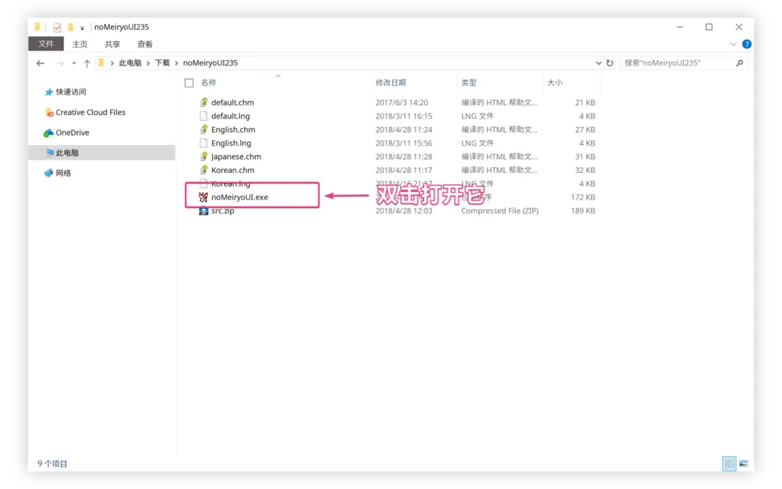 noMeiryoUI 是一个由日本友人开发的开源 Windows 字体替换工具,在 这里 可以下载到最新的版本。下载之后,解压缩,你会得到这样的一个文件目录: