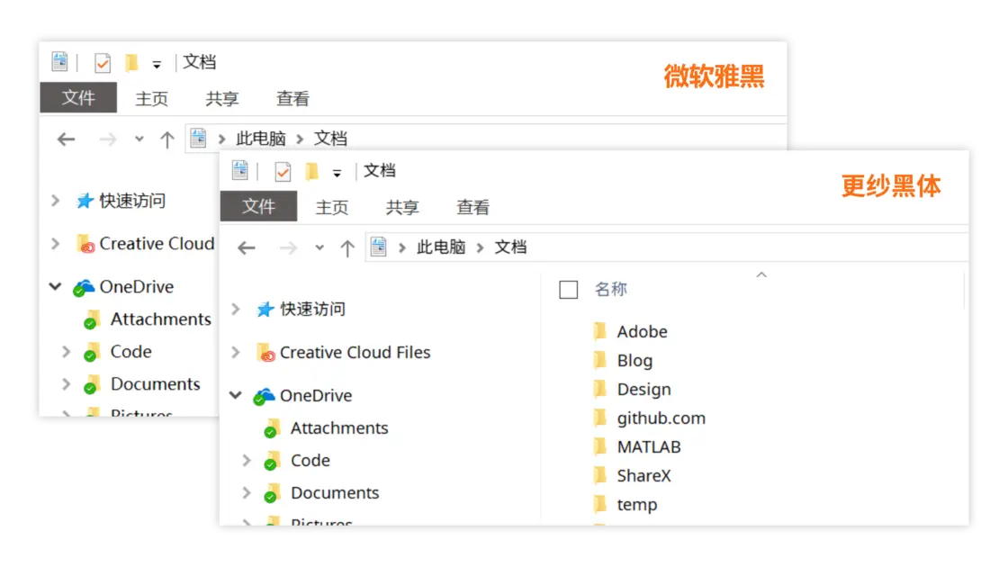 经过这样的操作,我们可以看到包括 Windows 资源管理器、右键菜单等等一系列地方的字体都被替换成了更纱黑体。