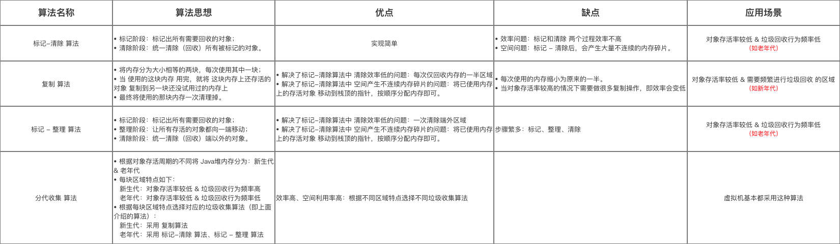 Java垃圾回收器(GC)的内存释放 = 垃圾回收算法,主要包括: