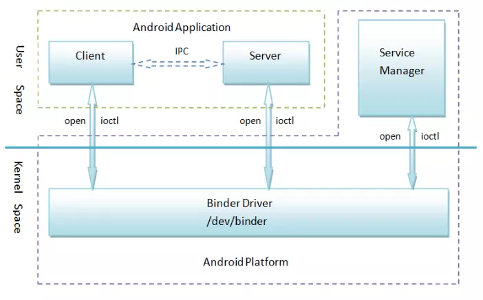在我们Android系统中,进程是一个独立程序,每个进程都具有自己的虚拟机 (VM),应用代码是在与其他应用隔离的环境中运行,进程直接的通信主要是基于Binder机制。为什么要提Binder,首先Binder是Android系统的中非常重要的实现机制,而我们组件化代码耦合的问题也可以借鉴其实现原理。接下来我简单的介绍一下Binder机制,先总体看一下Binder架构图:
