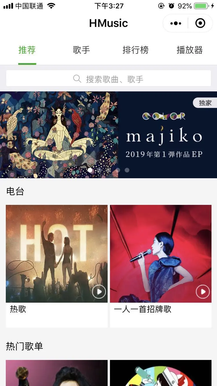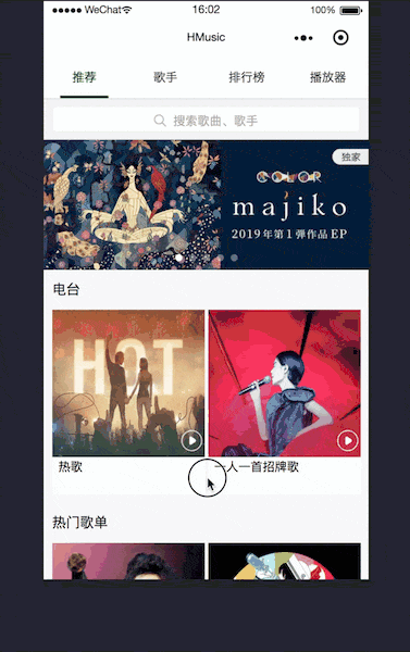 - 因为个人开发者无法发布在线音乐播放小程序,所以开发该小程序目的只为学习小程序开发;