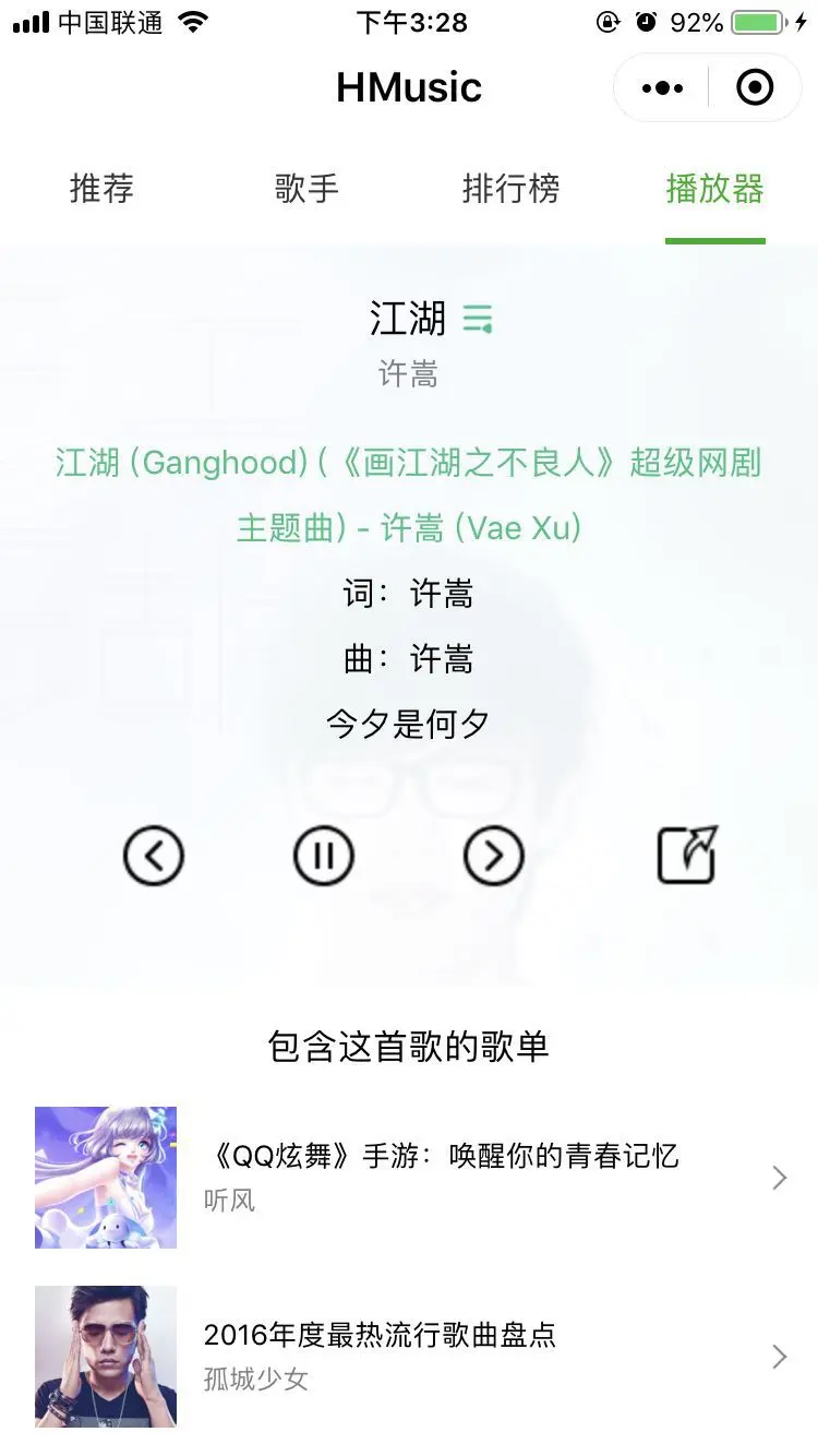- MV播放(最近发现QQ音乐的接口不返回MV数据了,所以这个功能暂时无法展示)