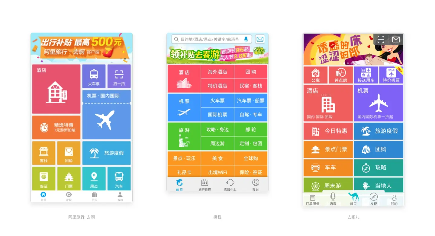 这个事其实很有代表性。在当时,旅行市场最大的品牌就两个,携程和去哪。虽然市场上还有同程、穷游、马蜂窝、驴妈妈、艺龙等旅行相关的app,但我们就叫“去啊”,其实已经暴露了我们的目的(并不是为了让大家想下“去哪儿”的时候,不小心下载了“去啊”),而是我们当时的目标就是要做一个对标OTA的旅行预订工具。
