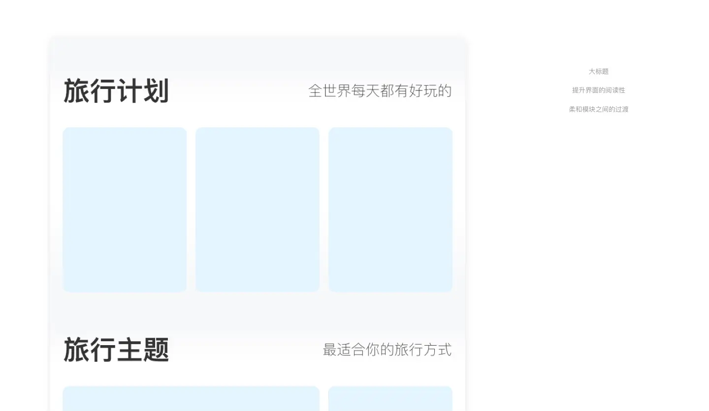 随着iOS11的推出,大标题对设计已经产生了较大的影响力。我们在设计首页时就做了大胆的尝试,使用简短有力的大标题和留白作为每个模块的区隔,让用户的视线可以从一个模块自然地过渡到下一个模块。