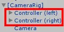展开Hierarchy中的[CameraRig]并选择Controller (left)。