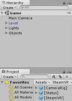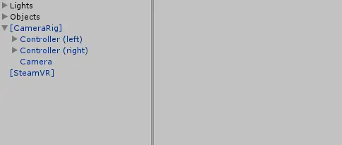 选择[CameraRig]和[SteamVR]并将它们拖到Hierarchy中: