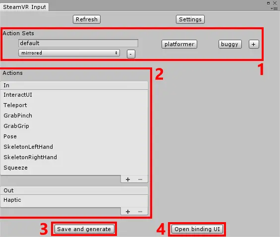 通过在顶部菜单中选择Window> SteamVR Input打开SteamVR Input窗口。
