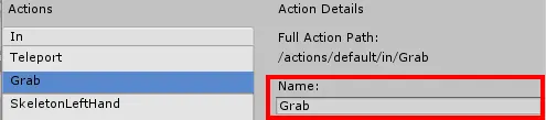 打开Teleport Action下拉列表并将其值更改为\actions\default\in\Teleport。 现在,对Grab Action执行相同操作并将其更改为\ actions \ default \ in \ Grab。