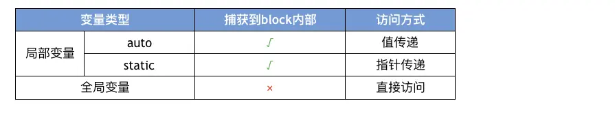 为了保证block内部能够正常访问外部的变量,block有个变量捕获机制