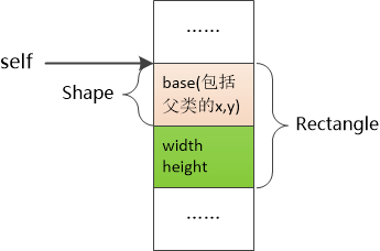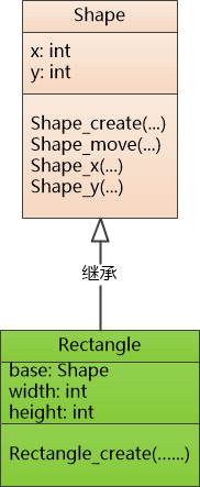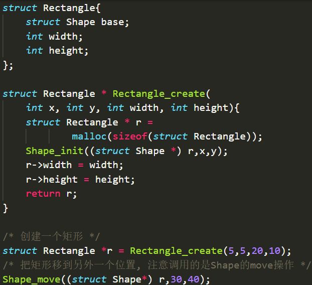 这次定义了一个矩形(Rectangle)的结构体,其中嵌套了Shape,难道这就实现了继承? C有点疑惑。