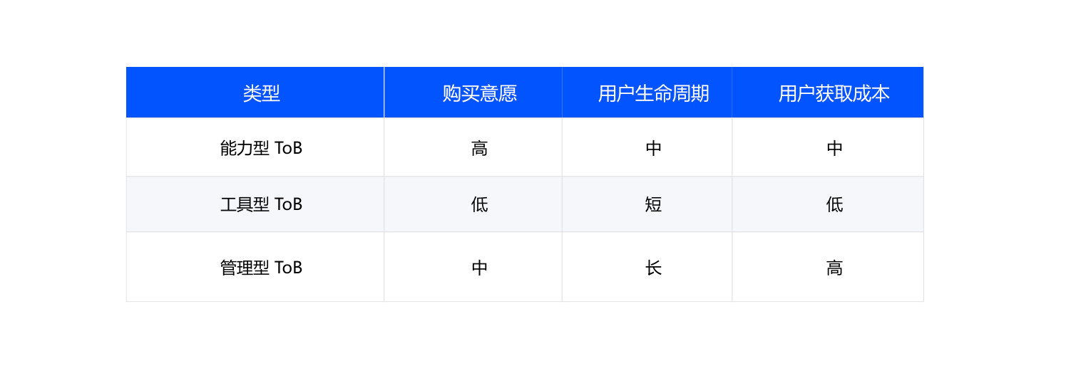 企业这个赛道可以按照产品类型做进一步的细分:工具型、管理型和能力型。这三种类型的服务方式和在过程中碰到的困难是完全不一样的。