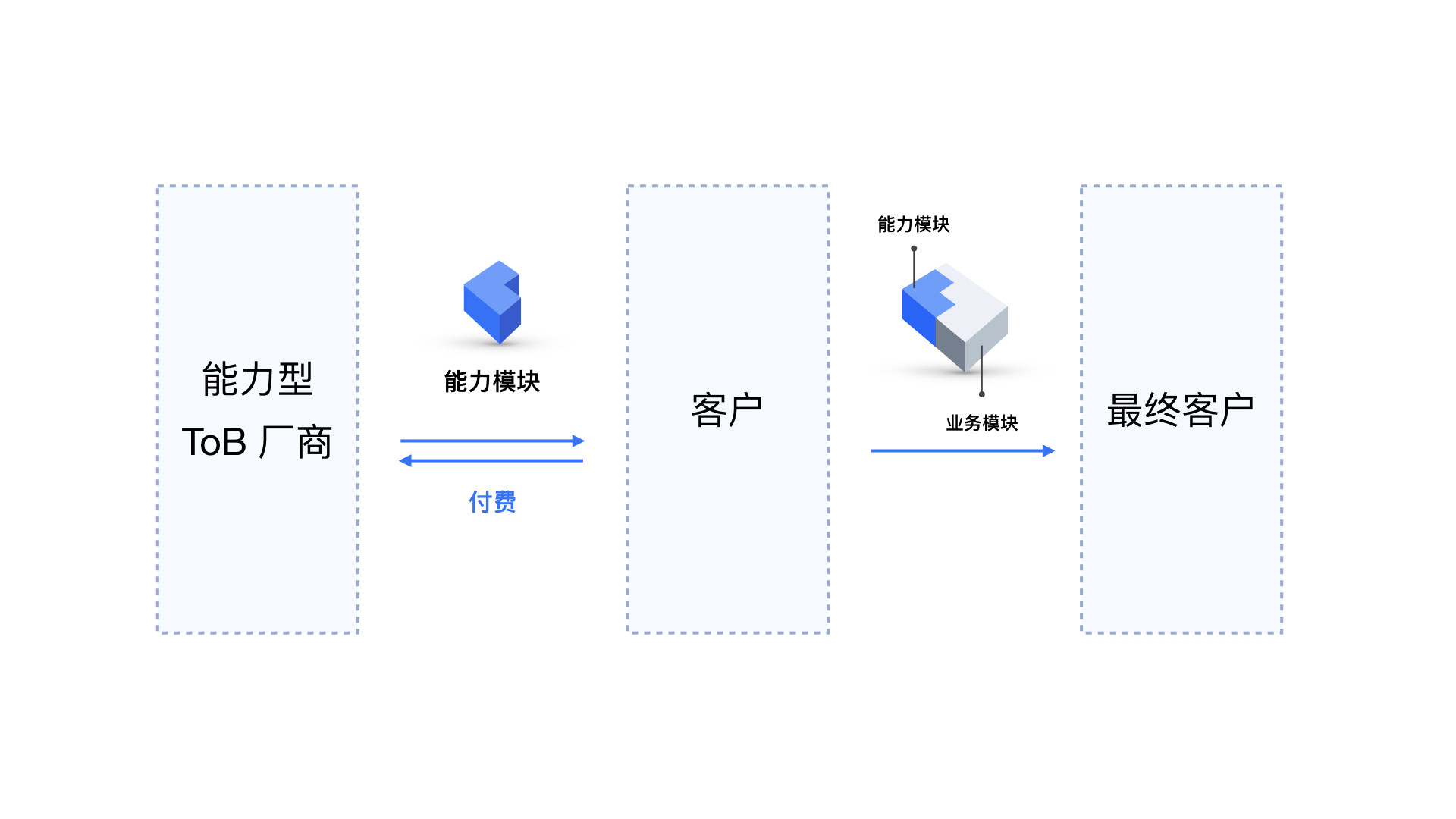 - 与能力型 To B 的产品合作。市场成熟后,能力型 To B 为解决产品同质化严重的问题,会寻求工具的能力。如同芯片厂商除了提供芯片产品还会提供相应的开发套件。