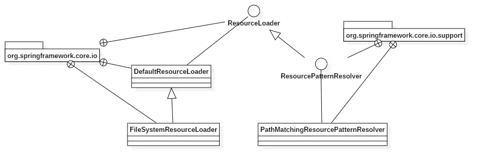 该实现类支持ResourceLoader级别的资源加载,支持基于Ant风格的路径匹配模式(类似于 **/*.suffix之类的路径形式),支持ResourcePatternResolver新增加的classpath*:前缀等,基本上集所有技能于一身。