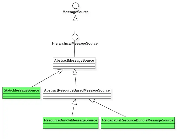 StaticMessageSource可硬编码添加信息,多用于测试ResourceBundleMessageSource常用生产环境ReloadableResourceBundleMessageSource可定时更新资源