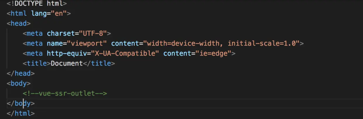 - 在template.html编写html,注意 <!—vue-ssr-outlet—> 这个必须写,相当于占位,服务端渲染的页面内容填充到此。