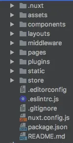 经过以上三个步骤,打开浏览器,访问localhost:3000,这跟创建一个Vue项目没太多不同。项目目录结构如下: