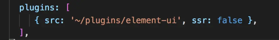 - 在nuxt.config.js中配置plugins字段,只在客户端运行时,可将引入的插件设置属性ssr: false