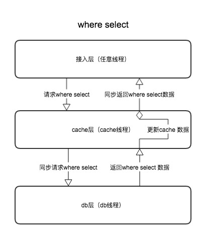 - where条件select,这个必须先同步到db线程获取查询结果,再同步修改内存里面的cache值,再返回给接入层