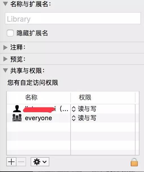 找到Library资源库文件夹,设置共享与访问权限,everyone读与写都可以