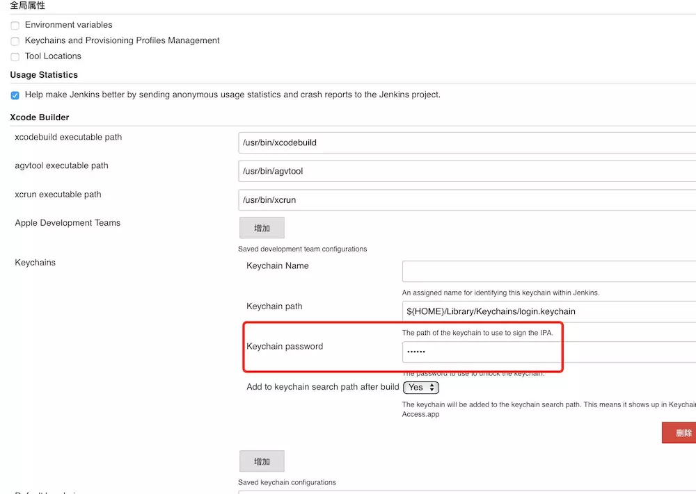 将/Users/用户名/Library/Keychains/下的login.keychain及login.keychain-db这两个文件拷贝到/Users/Shared/Jenkins/Library/Keychains文件夹下面