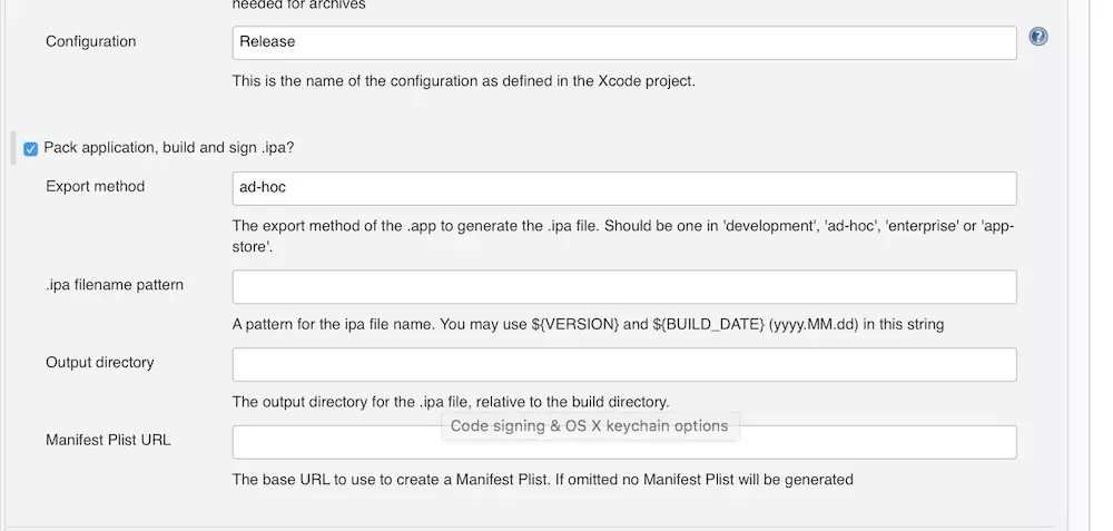 $ /usr/bin/xcodebuild -scheme xxxx -workspace /Users/用户名/workSpace/xxxx/xxx.xcworkspace -configuration Release clean archive -archivePath "/Users/Shared/Jenkins/Home/workspace/xxx/build/xxxx.xcarchive" "BUILD_DIR=/Users/Shared/Jenkins/Home/workspace/xxx/build/" DEVELOPMENT_TEAM=EFL2T3NT3W -exportArchive -exportPath /Users/Shared/Jenkins/Home/workspace/xxx/build/ -exportOptionsPlist /Users/xxx/options.plist