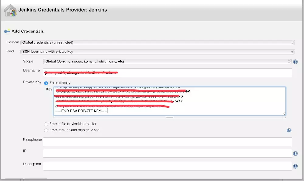 Username 为上传到git的用户名,Private Key从id_rsa文件里复制出来