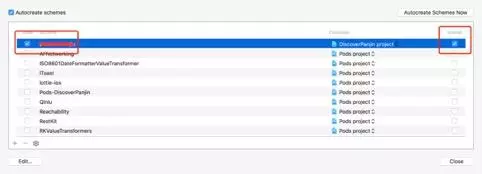 打开工程,mange schemes,勾选项目schemes对应的shared,该scheme为填写的Xcode Schema Files的内容