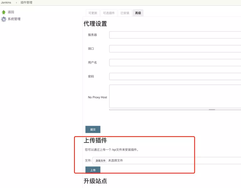 选择下载好的fir-plugin-1.9.5.hpi,上传并安装完后