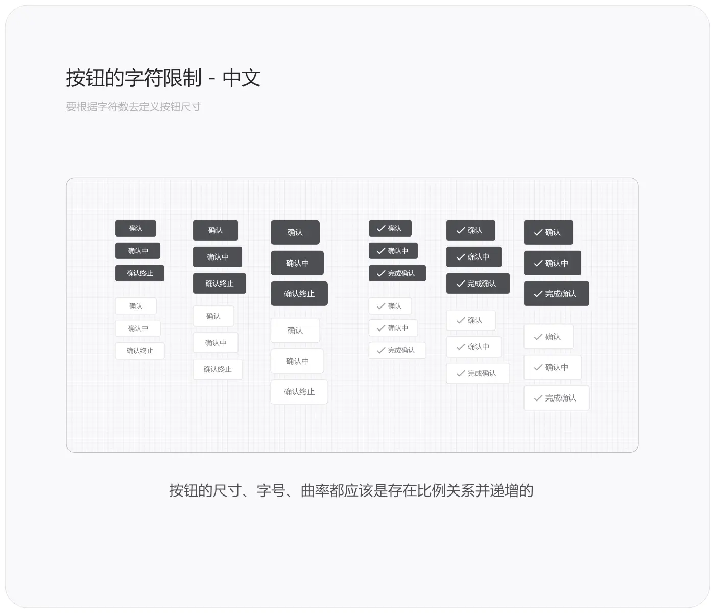 这里的尺寸不是死的,设计师可以根据自己的理解进行尺寸的设置。而采用这几个尺寸(24px、32px、40px、48px)的目的是更好的统一并规范按钮,因为24px、32px、40px、48px都是4的倍数,数与数之间也都是±8的关系,另外在绘制按钮时尺寸也可以平分,留出按钮上下均等的距离,另外这几个数值从Web端的体验上来看,比例也是相对更合适的,所以采用这几个数较为规范一些。