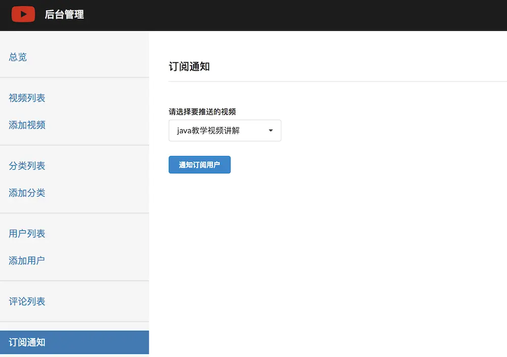 当我们要给用户发送邮件的时候,需要先选择要推送的视频。然后点击通知订阅用户,即可触发ajax发送代码,ajax代码位于static/js/myadmin/send_mail.js,里面最终调用的是SubscribeView中的post方法,中post方法中,我们先通过主键获取到视频的当前实例,并且还获取到所有订阅用户的email地址放到email_list中,最后调用send_html_email将邮件发送出去,send_html_email封装在helpers.py,它的具体代码是