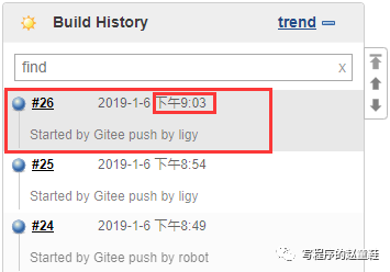 放两张图让大家看看效果,21点02分在IDEA执行了push推送,Jenkins在21点03分执行了自动部署