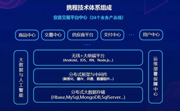 第二块,建立在基础框架上面的,是非常复杂的业务系统,携程酒店、度假、机票等业务的订单和商品中心产品数据等等,都是根植于这个系统当中。