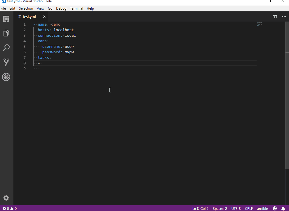 推荐配合vscode的ansible 插件(github repo 地址 github.com/VSChina/vsc…)